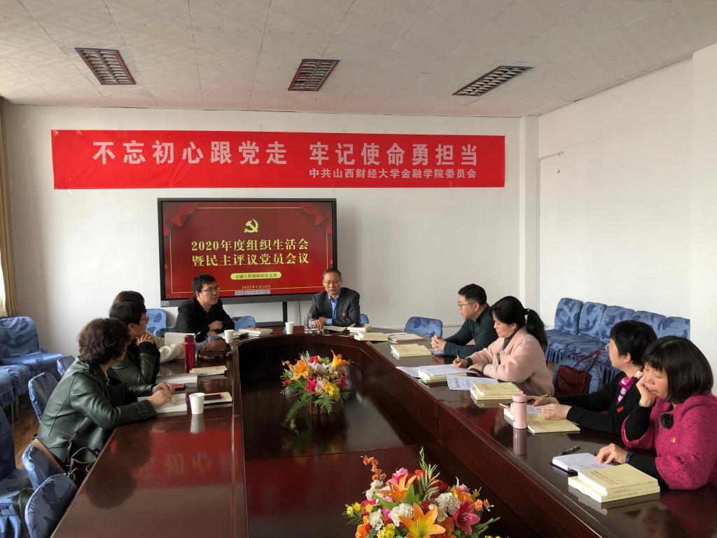 会议首先开展集中学习,全体党员深入学习“生命至上、举国同心、舍生忘死、尊重科学、命运与共的伟大抗疫精神”,结合实际探讨在日常工作中如何发扬伟大抗疫精神,做好疫情防控常态化下的教学与科研工作。随后,支部书记崔婕对2020年的支部工作进行汇报,提出在疫情影响下支部工作主要采取“线上+线下”融合模式,积极发挥网络技术、加强学习强国、三晋先锋APP的学习功能,圆满完成了各项支部工作,但在学习方式、组织活动形式上还应进一步丰富。接下来,支部举行民主评议工作,每位党员根据自身情况开展深刻的自我批评,其他同志也从支部建设、理论学习、科研工作、教学工作等方面对每位党员提出批评与建议,并进行民主自评与互评。最后,校党委副书记刘维奇从学校发展规划出发,对金融工程教研室支部建设工作提出畅想与建议,金融工程教研室2020年度组织民主生活会暨民主评议党员会议在全体党员的热烈讨论中落下帷幕。