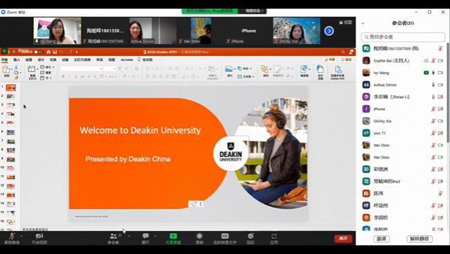 At 14:00 on July 1, 2022, the “3+1” Intercollegiate Exchange Program Project Promotion Meeting of Shanxi University of Finance and Economics and Deakin University was successfully held on Zoom online conference platform. Attendees include Prof. Wei Shen, Vice Chancellor for International Relations in Deakin University, Ivy Wang, Senior Partnership Manager in China Office, Shirley Xie, International Manager in Department of Business and Law, Sophie Bai, Head of Transnational Education and Partnership Coordination in the Department of International Affairs, Tina Mao, Senior International Coordination Officer in the Department of Business and Law, Prof. Li Jingping, Dean of the School of Finance in Shanxi University of Finance and Economics, Tao Xufeng in the Office of the School of Finance, Li Zhinan in Internationalization Office, and over 20 undergraduates from the School of Finance who pre-registered the program.