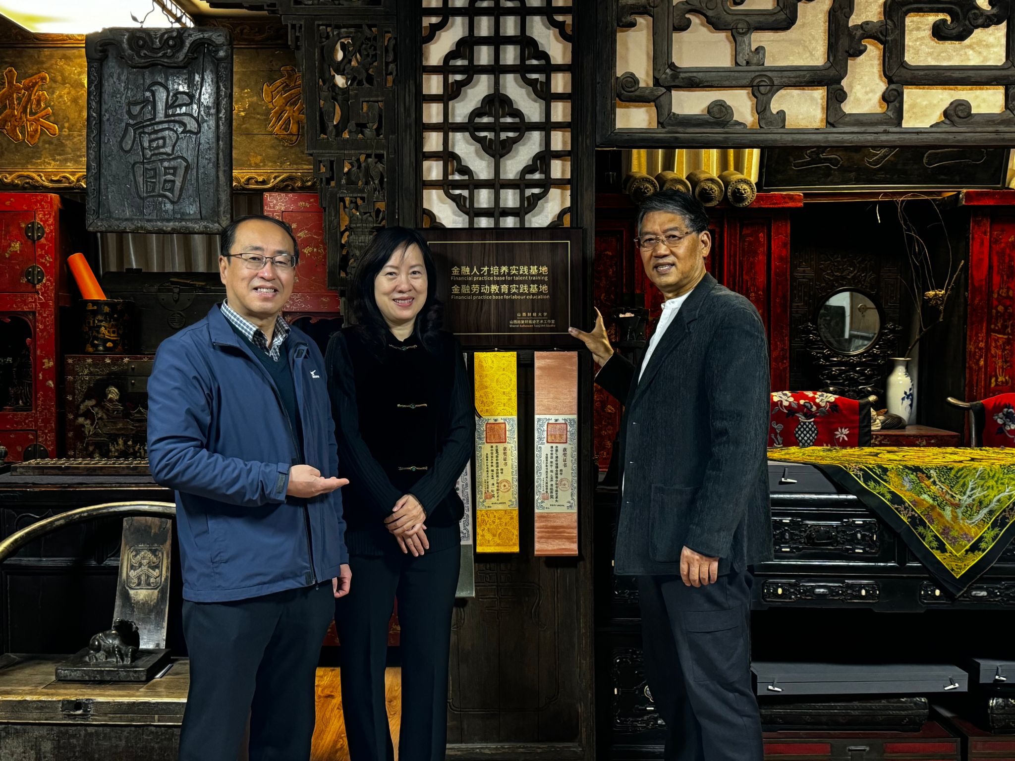 主要负责人赴山西省旭复轩拓迹艺术工作室,与该工作室主要负责人陈旭教授签订《共建人才培养实践基地和劳动教育实践基地》并举行挂牌仪式。