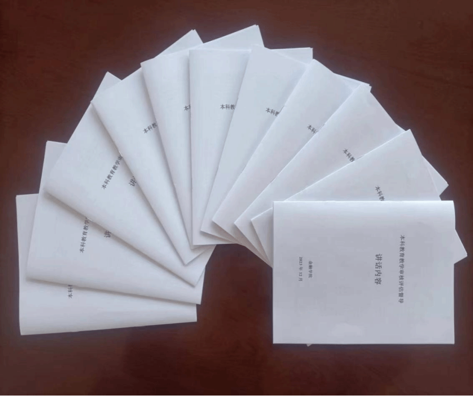 会议之前,学院每位老师都收到一份文字版的《本科教育教学审核评估督导讲话内容》小册子,为了让本次活动收到更好的效果,学院提前对上周督导组的讲话内容进行了现场录制,同时将每位督导组成员的讲话内容整理成文字形式,并进一步整理出文字版的《本科教育教学审核评估督导讲话内容》小册子。