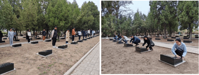 随后,全体师生们列队依次走进墓区,清扫烈士碑周边杂物,用毛巾擦拭墓碑上的尘埃,缅怀烈士伟绩,祭奠烈士英灵。