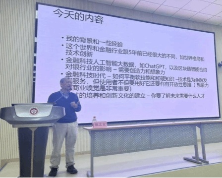 师生进行了一场主题为“金融科技时代下学生塑造与未来发展”的专题讲座。讲座从数字化转型的视角切入,深入探讨了学生在快速变革时代所需的核心能力、金融科技的未来趋势以及人工智能的潜力与应用。